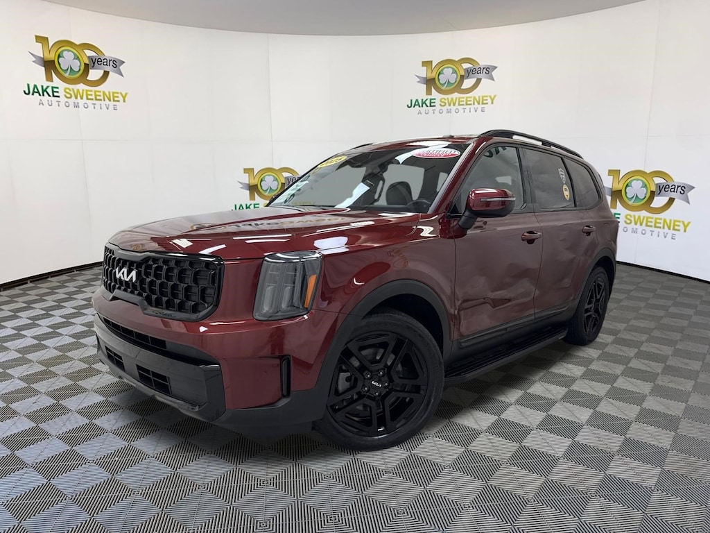 Standing proud and eager for action, our 2024 Kia Telluride EX X-Line AWD is here to dominate family drive time in Dawning Red! Powered by a 3.8 Liter V6 offering 291hp to an 8 Speed Automatic transmission with Drive Mode Select. This All Wheel Drive SUV also hustles you over challenging terrain with a center-locking differential and self-leveling rear suspension, and it scores nearly 24mpg on the highway. Aggressive and impressive, our Telluride travels in style with LED lighting, a power sunroof, 20-inch gloss-black wheels, high-utility roof rails, a hands-free liftgate, and exciting X-Line details.
