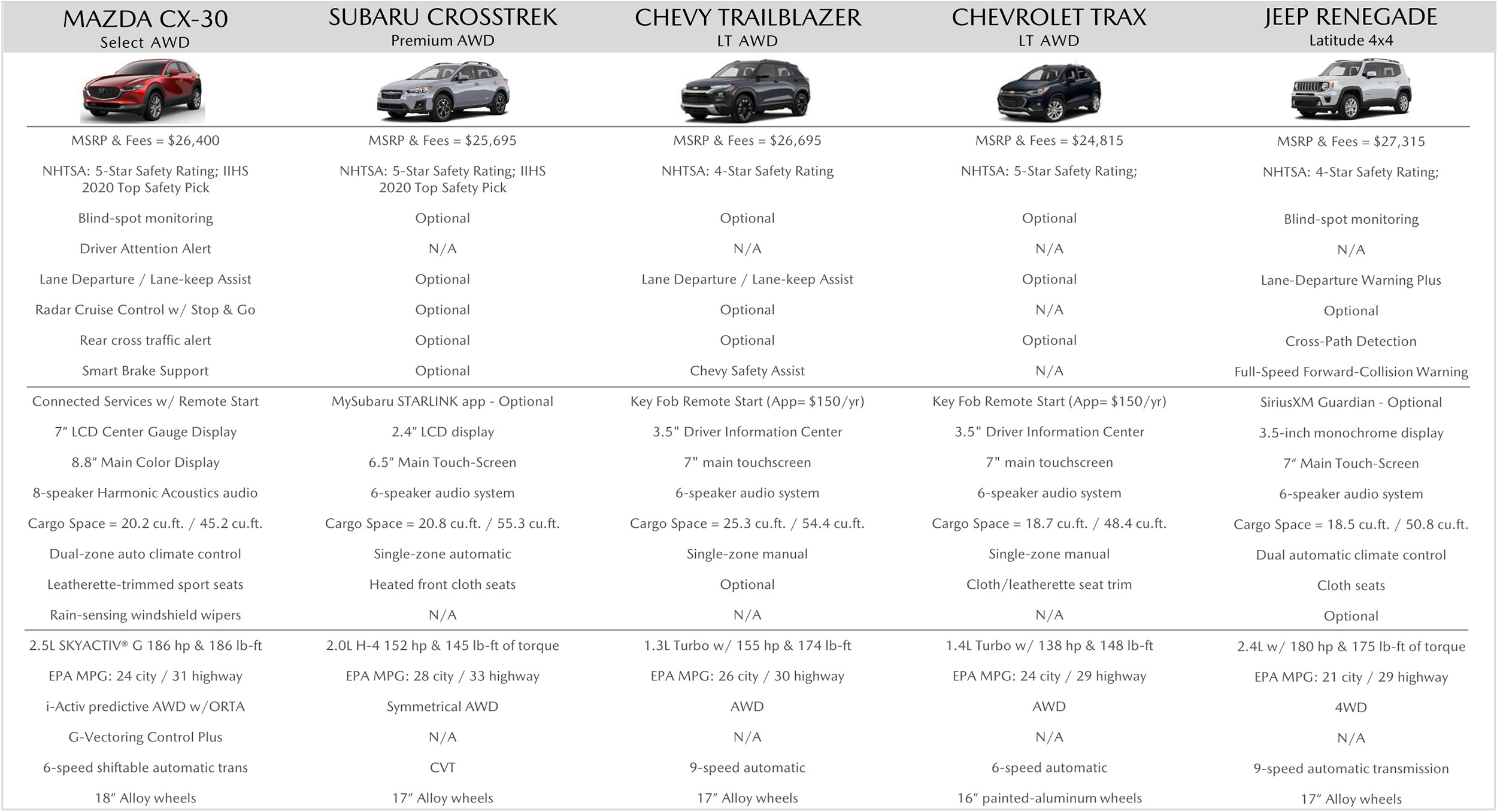 2020 Consumer Reports auto reliability brand rankings: #1 -Mazda, #2-Toyota, #3-Lexus. Per the IIHS, Mazda is the safest auto brand in 2020 - Every vehicle, other than the Miata, earned a Top Safety Pick or Top Safety Pick+ award. Mazda's predictive i-Activ AWD is superior to most of our competitors - allowing 100% of engine torque to go to the front wheels.