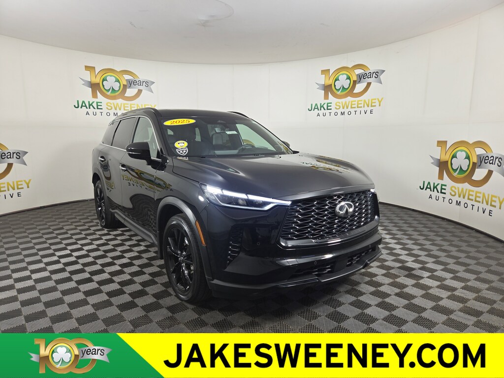 Jake Sweeney Is Here to Help! If you are in need of a new or used vehicle, we are offering you the ability to shop online and have your vehicle delivered to your home. Mineral Black 2025 INFINITI QX60 LUXE AWD 9-Speed Automatic 2.0L I4 Turbocharged DOHC 16V LEV3-ULEV50 268hpRecent Arrival! 22/27 City/Highway MPG