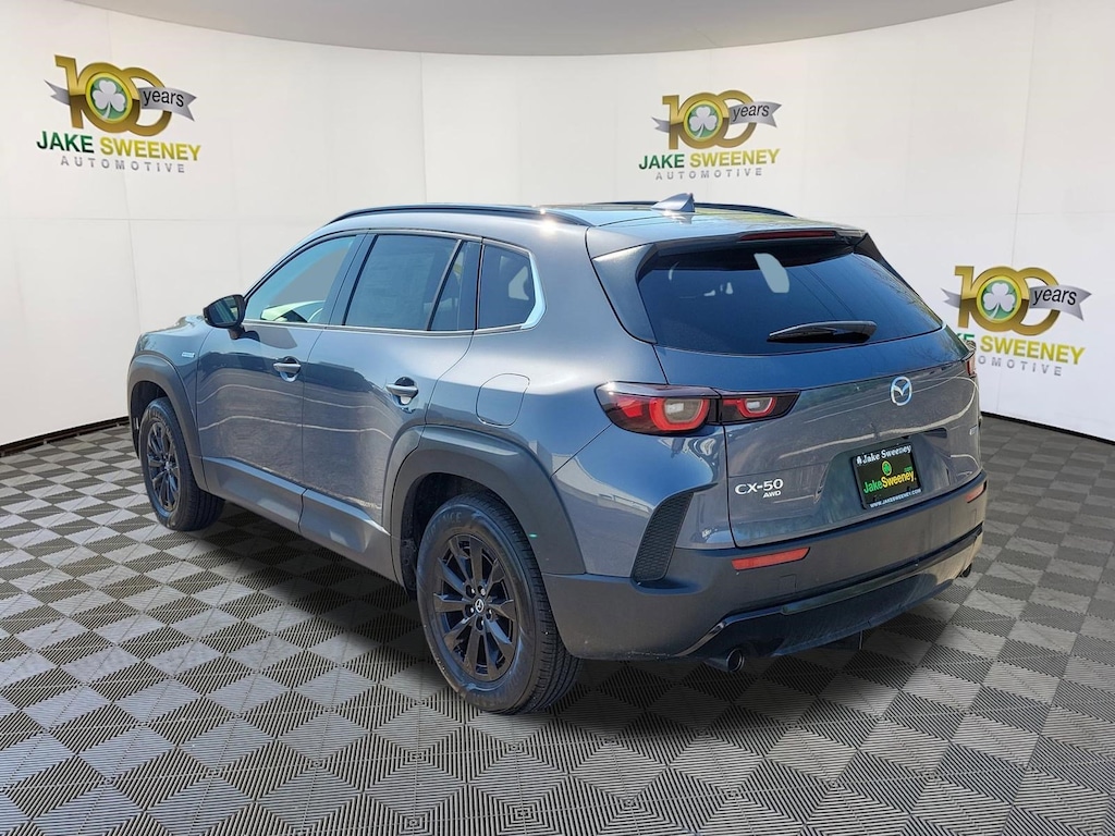 The sporty styling of our Accident Free, Certified Pre-Owned 2025 Mazda CX-50 Hybrid Premium eAWD looks fantastic in Polymetal Gray Metallic! Powered by a 2.5 Liter 4 Cylinder paired with three Electric Motors for a combined 219hp to an advanced CVT with multiple drive modes. Thanks to the responsive suspension, you can seek out twisty back roads confidently, and this All Wheel Drive SUV scores nearly 38mpg on the highway. Bold and sophisticated, our Premium features adaptive front LED lighting, a power liftgate, heated power mirrors, a sunroof, dual exhaust outlets, and eye-catching alloy wheels.