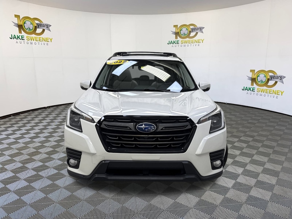 Our One Owner, No Accidents Reported 2022 Subaru Forester Limited AWD is a superior adventure machine that makes a bold impression in Crystal White Pearl! Motivated by a 2.5 Liter BOXER 4 Cylinder supplying 182hp matched to a paddle-shifted CVT that makes exploring your world a lot more fun. This All Wheel Drive SUV also excels on the trail with X-MODE capability, and it returns nearly 33mpg on the highway. Hard to ignore, our Forester has rugged good looks that go well with its steering-responsive LED headlamps, fog lights, a panoramic sunroof, black alloy wheels, a power tailgate, roof rails, and a chrome exhaust outlet.